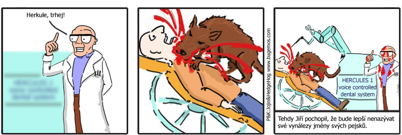 Minulý strip se ukázal jako trefa do černého. Došlo to dokonce tak daleko, že jsme se dostali až do světa papírových novin, byť šlo jen o pouhou zmínku v bulvárním plátku. Ale každý nějak začíná! (Tímto děkujeme věrnému čtenáři P.P., který neváhal obětovat světlo svého scanneru a osvítil nás, mimopražské.) Po krapet delší odmlce vyvolané mikrospánkem na vavřínech se ale vracíme do jistoty nereálného světa a přinášíme nomenklaturní poučení pro všechny začínající vynálezce...